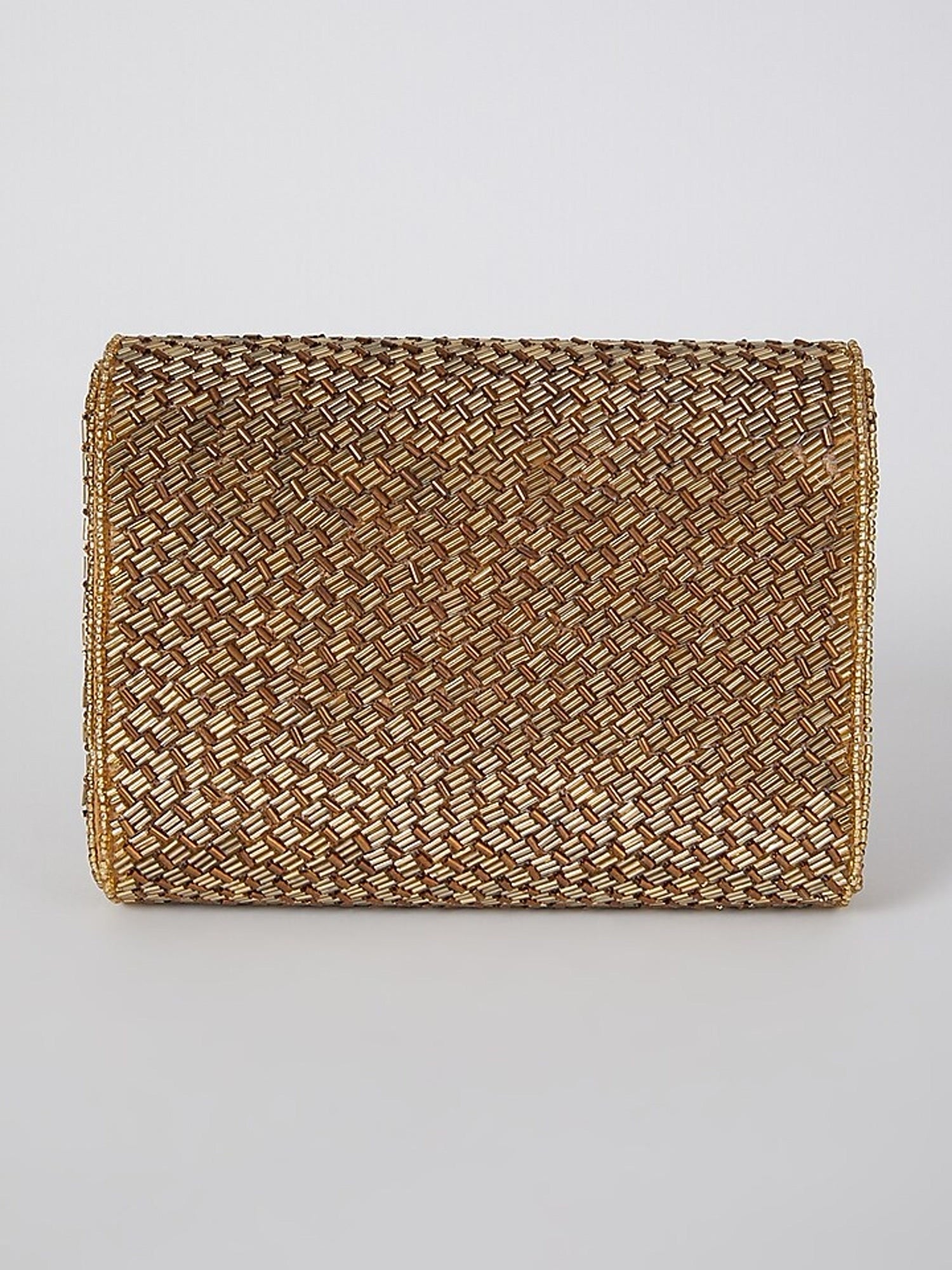 Geeta Basra Antique Gold Weave Flapover Clutch (With Minor Imperfections)