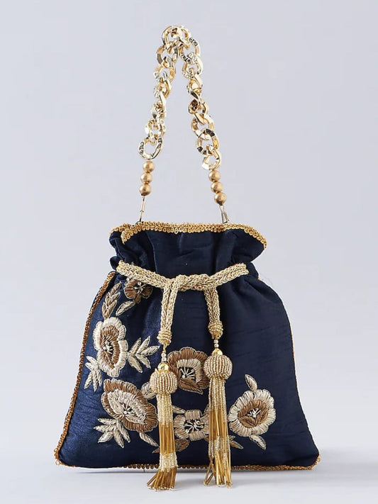 Blue Dabka Leaf Potli