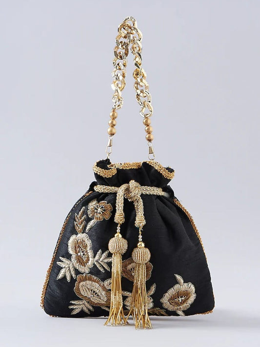 Black Dabka Leaf Potli